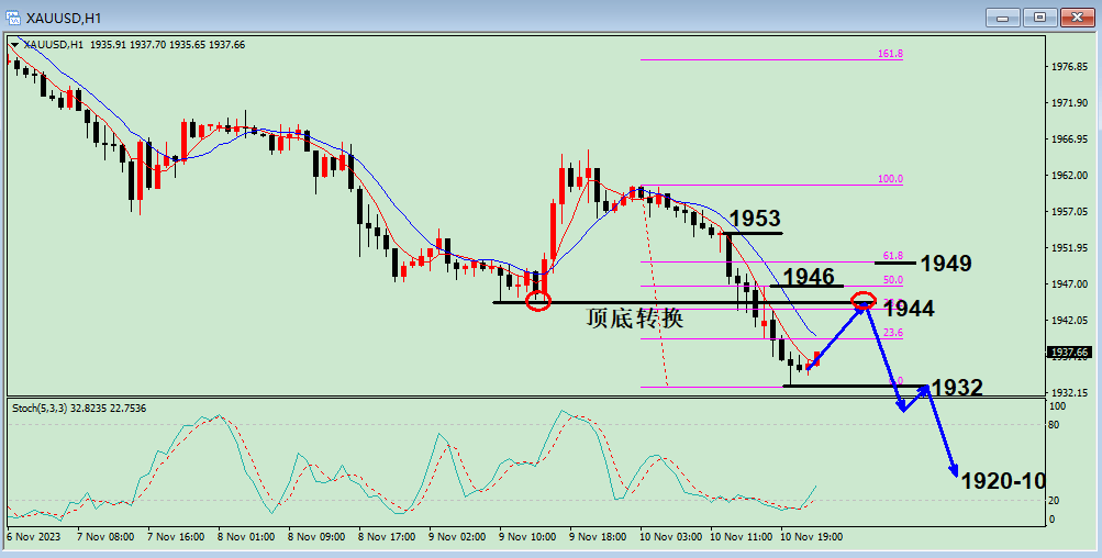 同时,如果黄金先反弹至1944-46可考虑先空,见1949-50可考虑加仓空,目标看1932破位。