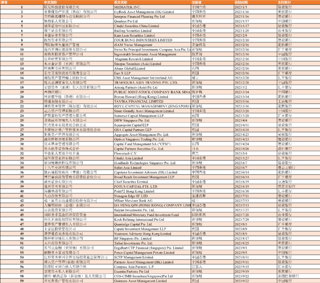 另据中国证监会官网,截至2023年9月底,今年已有59家机构获批为合格境外投资者。
