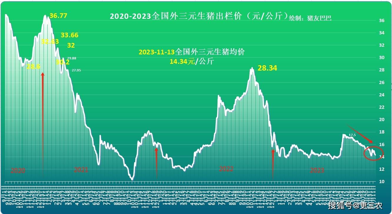 2023年11月13日,全国外三元生猪价格,出栏平均价在14.34元/公斤,价格相比昨日上涨0.04元,猪价止步4连降,市场“由跌入涨”,如今,立冬节气到来,猪价利好逐步兑现,部分养殖户期盼猪价超跌大涨,那么,此次猪价上调,行情“涨价潮”来袭?不过,对于猪价的前景,机构普遍预测,4季度谨慎看涨!具体分析如下: