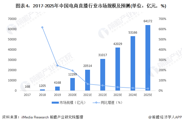 预计之后我国直播电商行业将逐步迈进稳步发展期,至2025年,我国直播电商带货交易总额约达64172亿元。