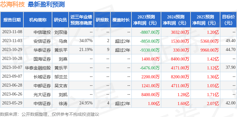 证券之星消息,2023年11月13日芯海科技(688595)发布公告称公司于2023年11月8日接受机构调研,新华资产、中加基金、民生加银、建信养老基金、中信资管、众安保险、浙商证券、鸿道投资、卧龙私募、毅达资本、拾贝投资、泰康资产、汇升投资、大象资产、丹羿投资、和聚投资、上海鹏石、长心投资、大家资产、建信基金、银华基金、中邮基金、国寿资产、长江证券、中汇人寿参与。