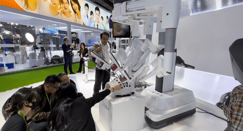 复星医药展出的手术机器人。(中国商报记者 马嘉/摄)