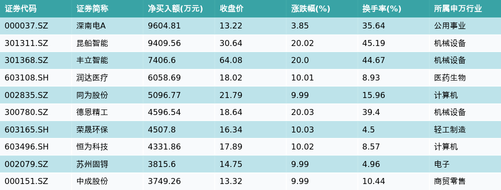 6月29日龙虎榜营业部净买入额前10详情见下表: