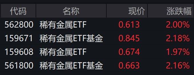 原标题:稀有金属板块盘中拉升,稀有金属ETF涨2%