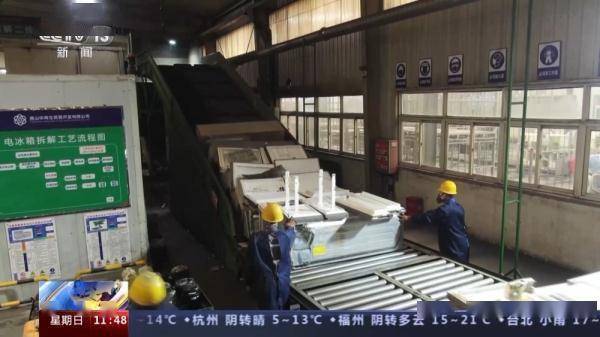 企业负责人 李晨涛:整个投了700多万,上了三条线,一个是冰箱拆解线,一个是洗衣机和空调的多功能线,还有一个电视机拆解线。效率提高很多,冰箱提高了三到四倍以上。