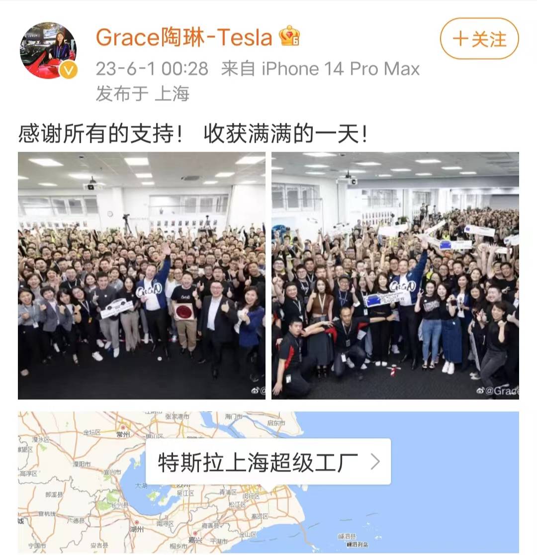 时隔三年,马斯克访华的匆匆行程中,不忘再次前往上海的超级工厂。5月31日午夜,马斯克在上海降落,随后特斯拉对外事务副总裁陶琳发布微博,晒出两张马斯克与员工的集体合影,配文“感谢所有支持,收获满满的一天!”并特意定位于“特斯拉上海超级工厂”。6月1日上午,马斯克离开上海返回美国。