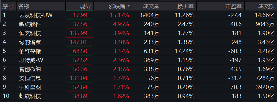 科创100ETF(588190)紧密跟踪上证科创板100指数,截至2023年11月13日13:04,指数成份股中,云从科技-UW领涨15.17%,新点软件上涨4.95%,恒玄科技上涨3.94%,绿的谐波、佰维存储等个股跟涨。