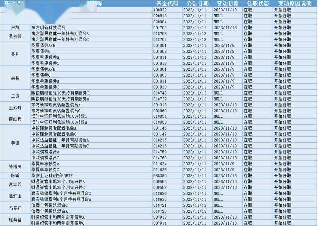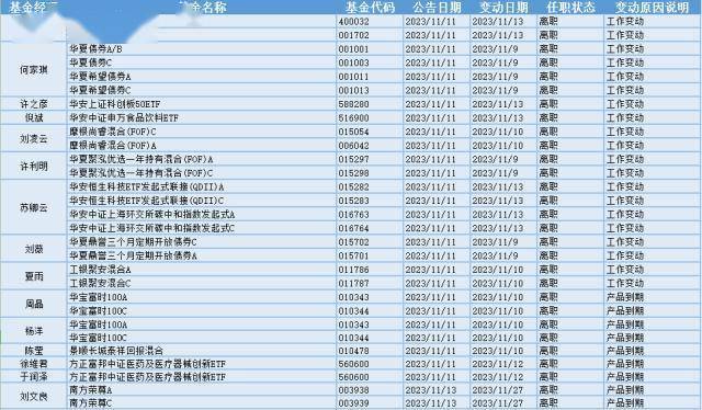 根据巨灵统计的数据显示,近30天(11.13-11.13)共有316只基金产品的基金经理发生离职变动。其中今天(11.13)有29只基金产品发布基金经理离职公告,从变动原因上来看,有9位基金经理是由于工作变动从管理的20只基金产品中离职的,有6位基金经理是由于产品到期从管理的9只基金产品中离职的。