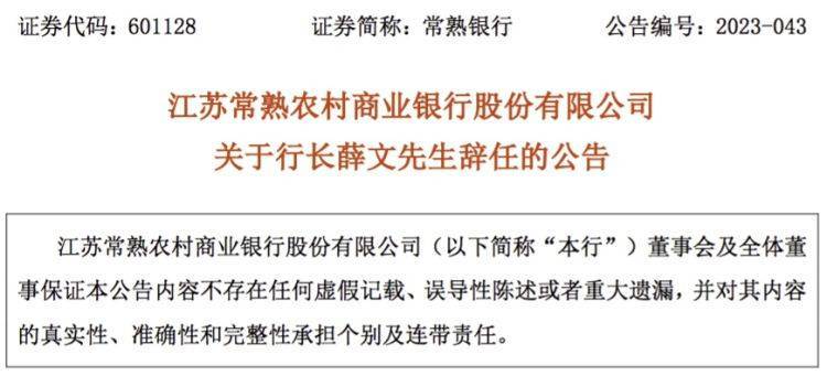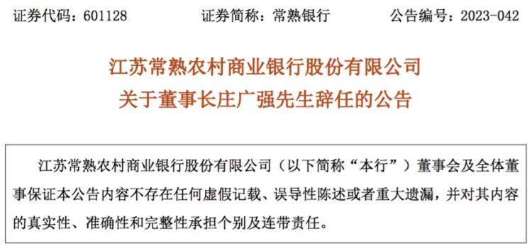 原标题:【原创】常熟银行:董事长庄广强辞任