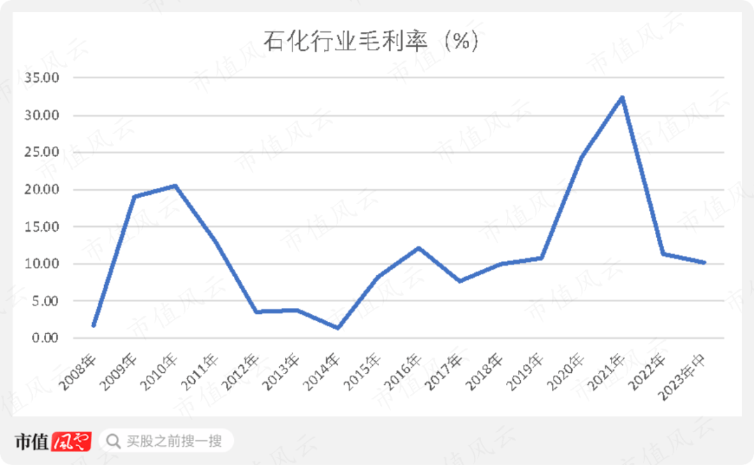 (荣盛石化石化行业收入毛利率。制图:市值风云APP)