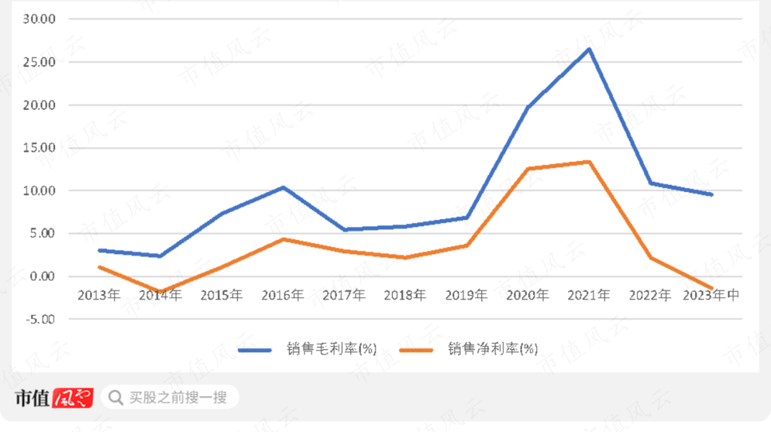 荣盛石化的净利率,基本和毛利率的波动周期是一致的。
