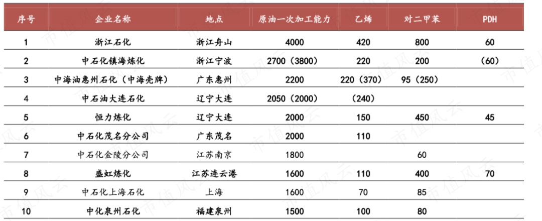 (中国千万吨级以上前十名炼厂,招商银行研究院)