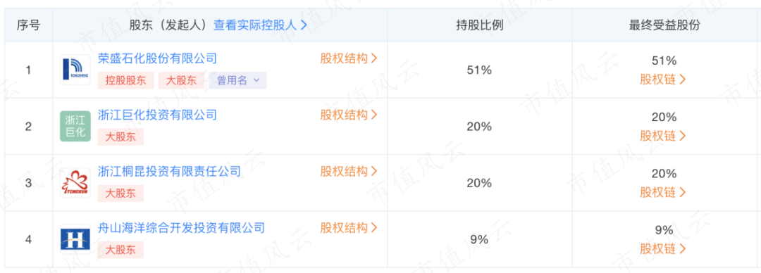 (浙石化股权结构,天眼查)