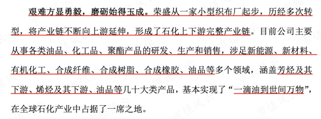 荣盛石化从一家小型织布厂起家,不断地往上游石化行业延伸,如今打通“原油-PX-PTA-聚酯长丝”全产业链,并得到供应商中东沙特阿美战略入股,保障了原油供应。