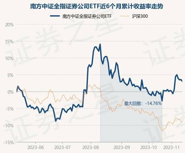 证券之星消息,11月13日,南方中证全指证券公司ETF最新单位净值为0.9637元,累计净值为0.9637元,较前一交易日下跌0.44%。历史数据显示该基金近1个月上涨4.12%,近3个月下跌5.76%,近6个月上涨3.11%,近1年上涨11.51%。该基金近6个月的累计收益率走势如下图: