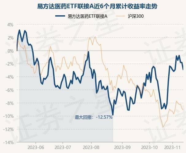 证券之星消息,11月13日,易方达医药ETF联接A最新单位净值为1.0594元,累计净值为1.0594元,较前一交易日下跌1.08%。历史数据显示该基金近1个月下跌0.2%,近3个月上涨3.12%,近6个月下跌2.91%,近1年下跌6.69%。该基金近6个月的累计收益率走势如下图: