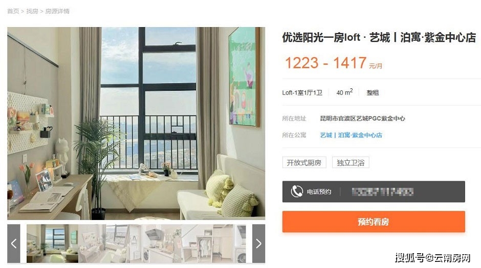 万科泊寓是今年才进入昆明市场的,首店位于华洋五金机电市场对面的艺城紫金中心,今年4月才开始开放预订,官方给出的价格是最低 1020元/月/间,但主打的40平米LOFT,对外价格是1223-1417元/月,按万科泊寓的装修、管理以及位置来说,也还不算高。