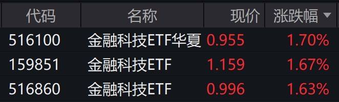 受重仓股上涨影响,跟踪中证金融科技主题指数的金融科技ETF华夏、金融科技ETF普涨逾1.6%。