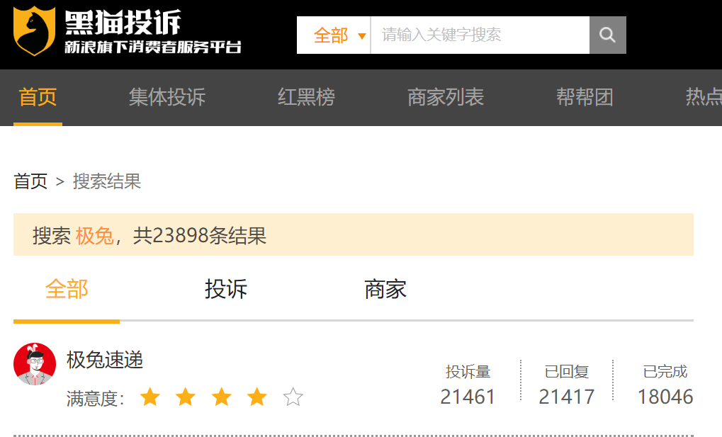 反观极兔,除了小红书上大量的用户吐槽,黑猫投诉上的投诉量更是高达21461条。内容包括“丢件”“推卸责任”“快递破损”等等。某些电商平台评论区,甚至出现“发极兔直接退”“发极兔就差评”的“激进”购物者。