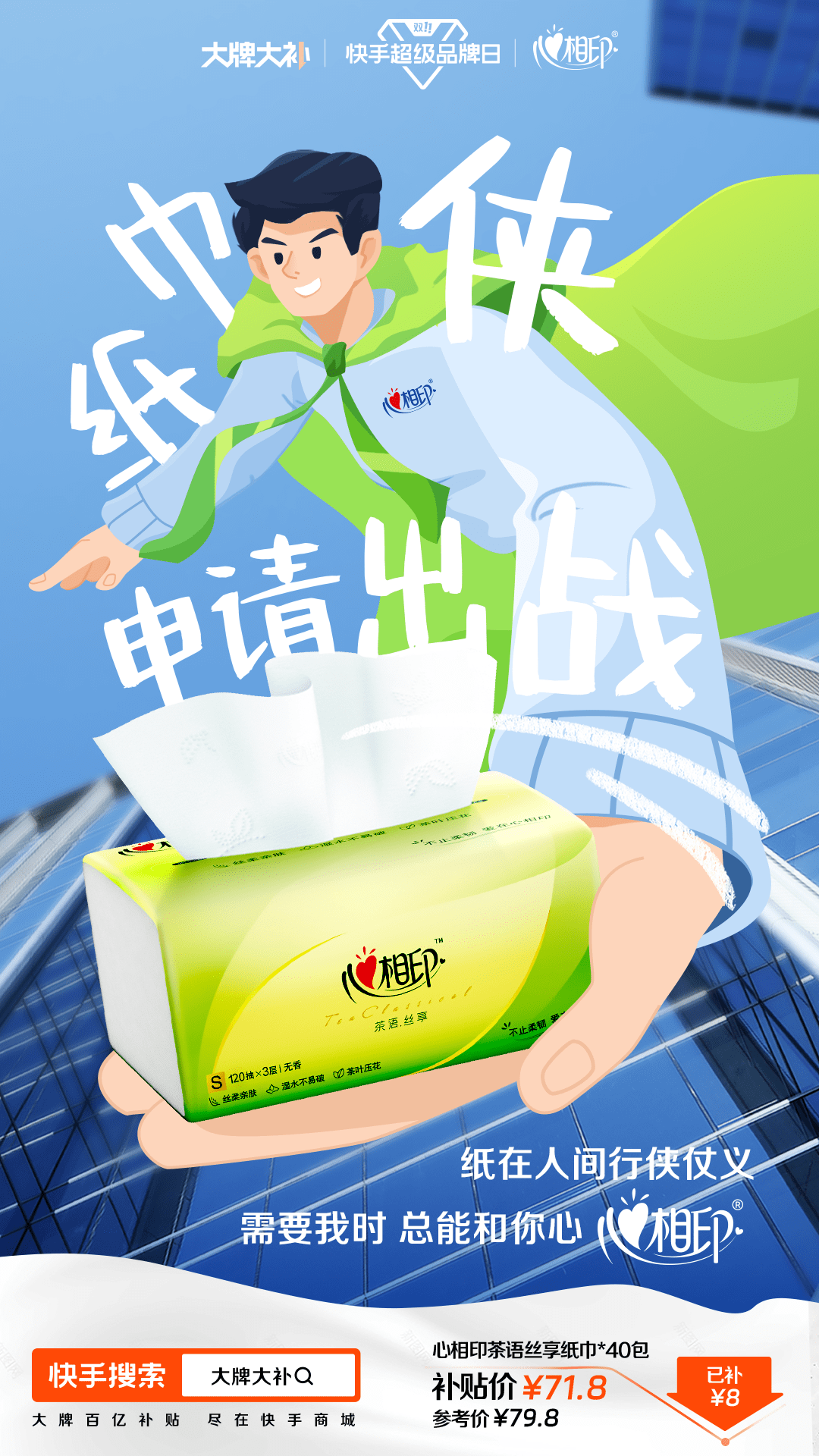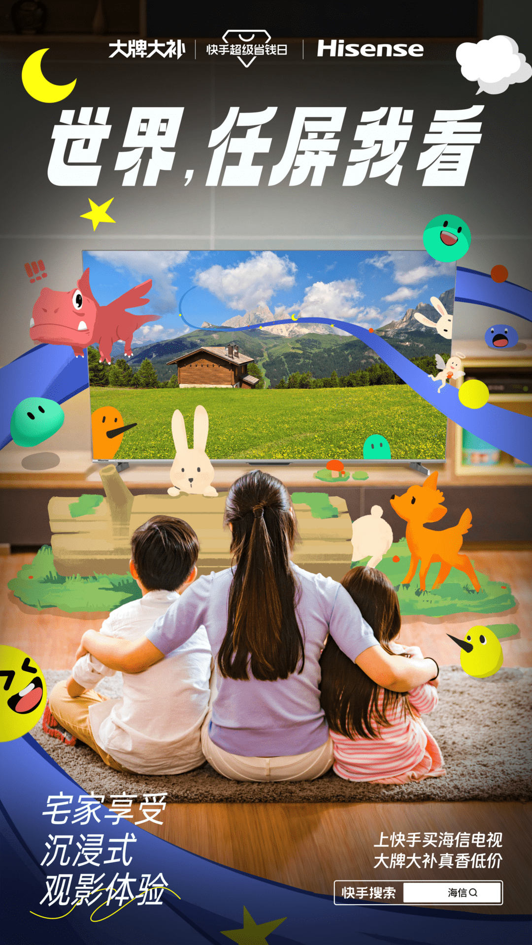 刚需纸巾产品的心相印,总裁在活动期间化身“纸巾侠”,空降直播间为大家送福利,话题#心相印直播间纸巾侠发福利 #纸巾侠才是秋冬顶流 登上快手热榜;海信则突出产品影院级别的画质和音效,在站内发起#这下谁还分得清电视和现实 话题,巧妙传递卖点。