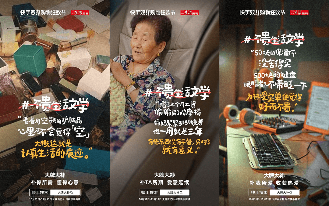 10月31日—11月11日,快手电商携手《三联生活周刊》,共同发起「大牌大补真香计划」,并邀请10多位明星&达人作为好物推荐官分享不贵生活理念,与广大网友一起探讨「不贵生活文学」。