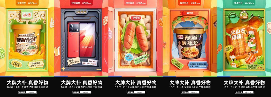 借助大牌大补的补贴机制,各大品牌释放出年度最强价格力,同时,快手电商借用 “真香”与“真箱”的谐音梗,将消费者能在快手商城买好物的体验具象化,用趣味化的语言拉进与消费者的距离。
