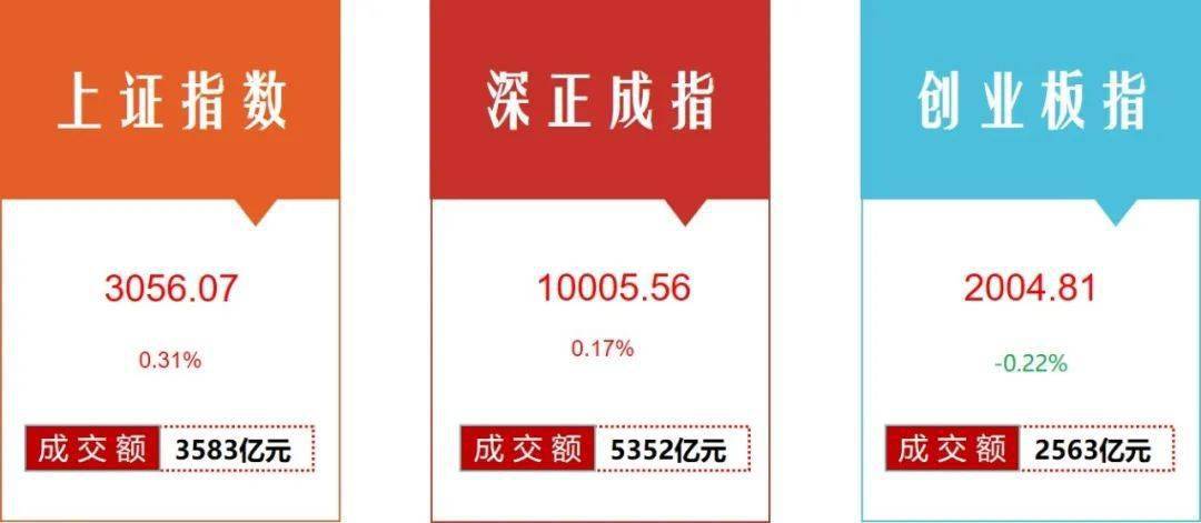 今日收盘,沪指报3056.07点,涨0.31%;深成指报10005.56点,涨0.17%;创业板指报2004.81点,跌0.22%。两市成交额8934亿元,较上一交易日放量248亿元,近3000只个股上涨。今日,北上资金净流入4.65亿元、净卖出21.09亿元,其中沪股通净流出4.37亿元、净卖出16.84亿元;深股通净流入9.02亿元、净卖出4.25亿元。