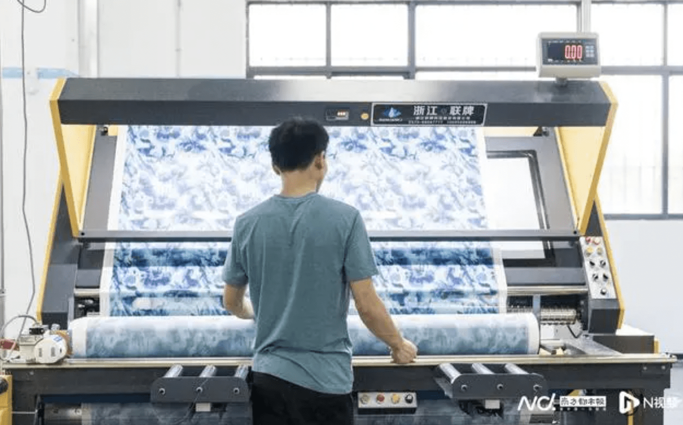 电脑制作好花样,预印在白色纸张上,确认效果无误后便可大批量翻印到白布上,甚至连后期需要裁剪拼接的布片形状都可以事先排版好,尽量减少布料浪费、节省后续裁剪工序。而用过的白色纸张,还能回收利用做到不浪费。对供应商老板廖飞而言,只需要备好时兴材质的白布,不用担心跟不上趋势或者卖不完,少了传统模式下需要提前半年储备来料的库存烦恼。