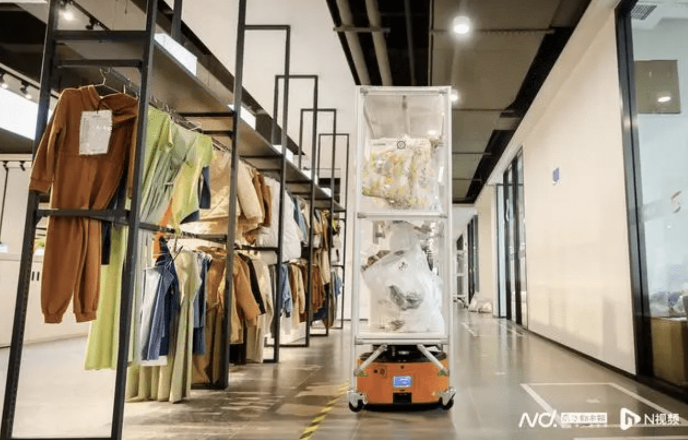 SHEIN自主研发的智能推车,能自主送货、方便设计师测款。