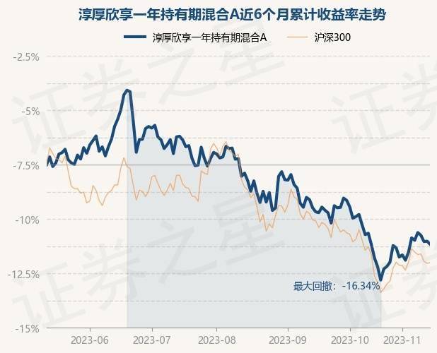证券之星消息,11月14日,淳厚欣享一年持有期混合A最新单位净值为1.1616元,累计净值为1.1616元,较前一交易日下跌0.32%。历史数据显示该基金近1个月下跌1.9%,近3个月下跌6.61%,近6个月下跌7.32%,近1年下跌6.12%。该基金近6个月的累计收益率走势如下图: