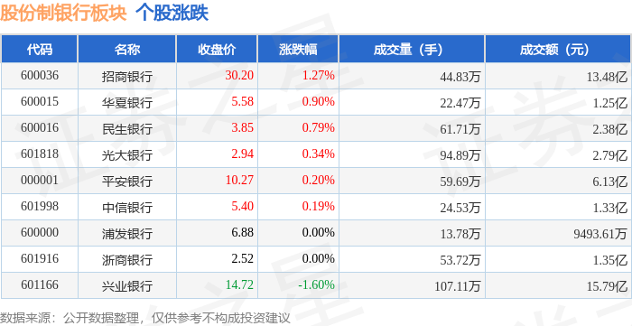证券之星消息,11月14日股份制银行板块较上一交易日上涨0.3%,招商银行领涨。当日上证指数报收于3056.07,上涨0.31%。深证成指报收于10005.56,上涨0.17%。股份制银行板块个股涨跌见下表: