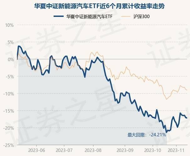 证券之星消息,11月14日,华夏中证新能源汽车ETF最新单位净值为1.27元,累计净值为1.27元,较前一交易日下跌0.63%。历史数据显示该基金近1个月下跌1.64%,近3个月下跌13.62%,近6个月下跌17.7%,近1年下跌30.58%。该基金近6个月的累计收益率走势如下图: