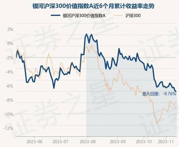 证券之星消息,11月14日,银河沪深300价值指数A最新单位净值为1.5元,累计净值为1.725元,较前一交易日上涨0.27%。历史数据显示该基金近1个月下跌4.28%,近3个月下跌6.02%,近6个月下跌5.84%,近1年上涨5.56%。该基金近6个月的累计收益率走势如下图: