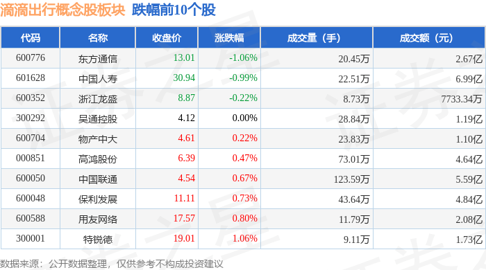 北向资金方面,当日滴滴出行概念股板块北向资金持股市值为174.51亿元,增持0.78亿元。其中增持最多的是中国人寿,增持了0.69亿元。减持持最多的是中科创达,减持了0.54亿元。滴滴出行概念股板块北向资金持股变动明细见下表: