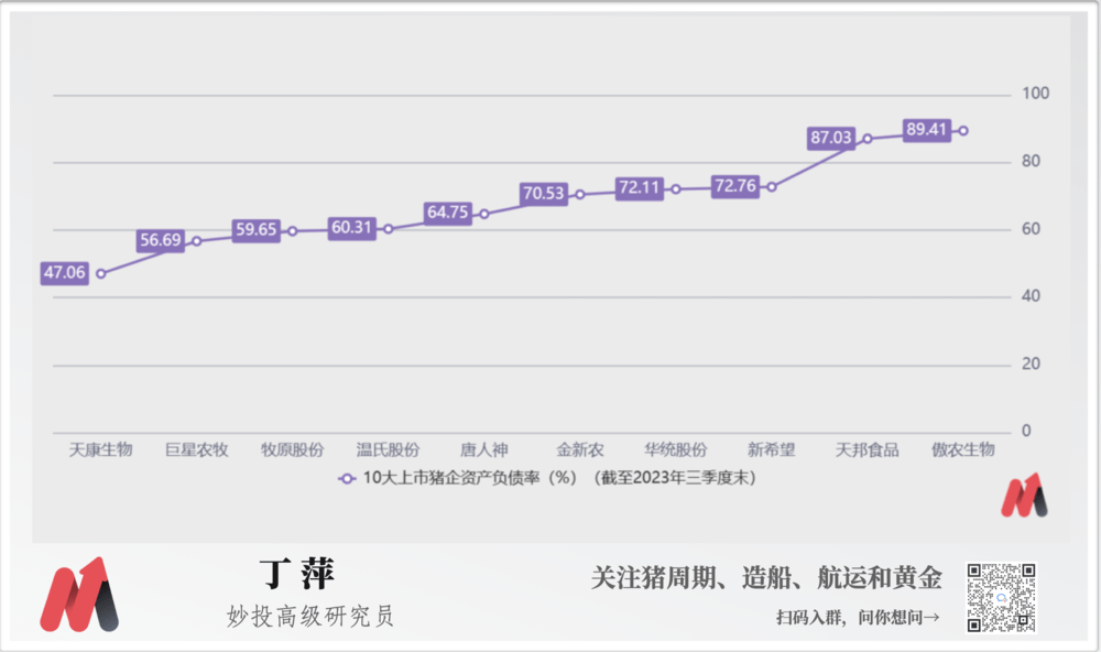 对于生猪养殖企业来说,现金流的亏损持续超过2个季度,那么企业经营活动就会出现困难,对于资产负债率很高的猪企(如新希望、天邦食品和傲农生物等)而言,如果超过3个季度,财务危机是大概率要出现的。