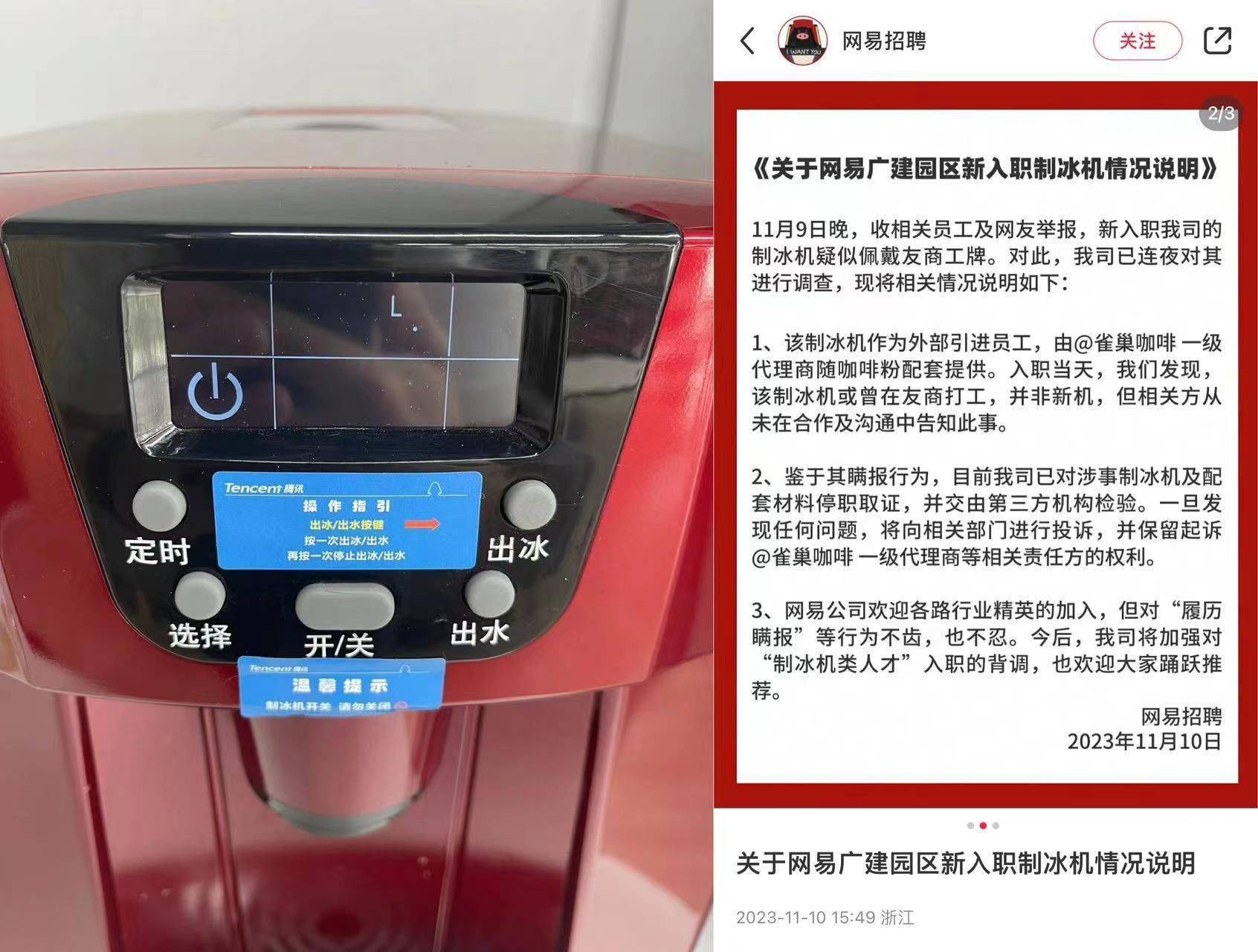 雀巢回应网易举报:制冰机并非由雀巢生产或提供