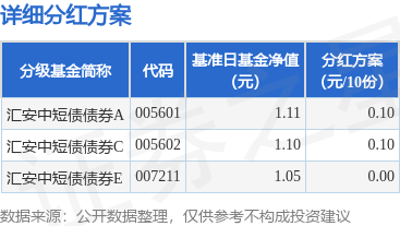 证券之星消息,11月15日发布《汇安中短债债券型证券投资基金分红公告》。本次分红为2023年度的第一次分红。公告显示,本次分红的收益分配基准日为11月11日,详细分红方案如下: