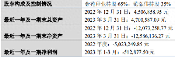 截至递表前,北京金苑由金苑种业持股65%,由范弘伟持股35%。