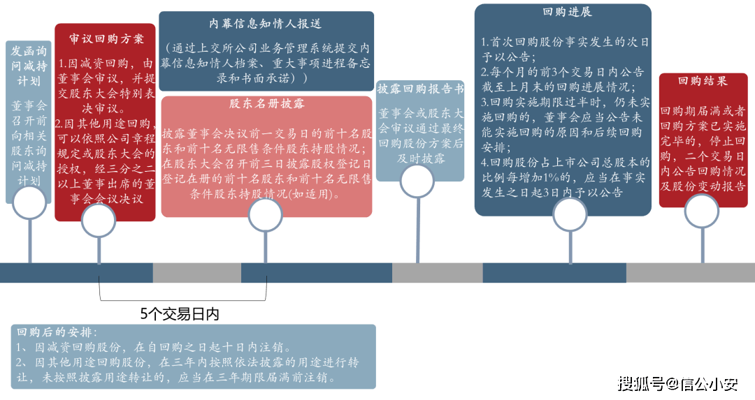 为方便董办小伙伴参考股份回购的操作步骤,信公君将股份回购的基本流程归纳至如下流程图: