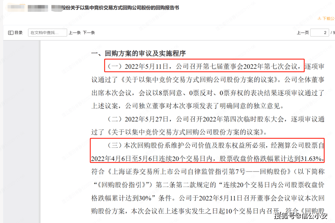 参考如下案例,该公司股价从4月6日至5月6日(连续20个交易日)连续下跌,满足“护盘式回购”触发条件,从4月6日至5月10日(董事会审议回购方案前一日)累计跌幅为24%(已不足30%),但上市公司在事实发生之日起10个交易日(即从触发护盘式回购条件之日起算)内召开董事会审议所以仍然满足回购股份的条件。