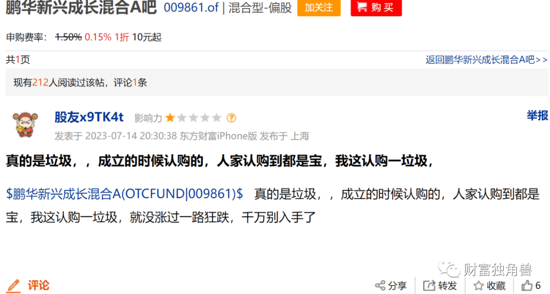 有基民表示,鹏华的基金再也不敢买了,因为有梁浩和王海青在,看西安有人因为基金大跌起诉托管银行的胜诉的,想找地方投诉了…买了这么久这个批基金就从来没红过。也有基民表示,真的是垃圾,成立的时候认购的,人家认购到都是宝,我这认购一垃圾,就没涨过一路狂跌,千万别入手了。甚至有基民表示,这基金从首发到现在亏41%了,怎么还好意思在招行收1.5%手续费的啊,降到0.15,让我们自救一下也行啊!!!