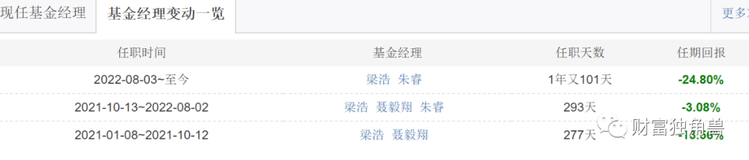 与鹏华新兴成长混合A基金有所不同,鹏华汇智优选混合A梁浩与三位基金共同管理过该基金,2021年1月8日-2021年10月12日由梁浩与聂毅翔共同管理过该基金,任职277天,任职回报-13.56%;2021年10月13日-2022年8月2日由梁浩、聂毅翔、朱睿三人管理,任职天数293天,任职回报-3.08%;然而,自2022年8月3日至今又改由梁浩和朱睿管理,任职1年又101天,任职回报-24.80%。