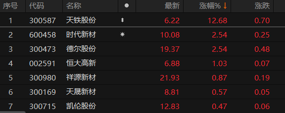 上证报中国证券网讯 11月15日午后,噪声防治概念股继续走强。截至13时17分,天铁股份涨超12%,时代新材、德尔股份涨超2%,恒大高新涨逾1%,祥源新材等跟涨。
