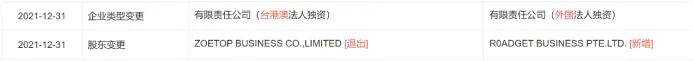 不过,2021年底,希音又发生了一次股权架构的变化,控股股东由卓天商务有限公司变为了新加坡公司(希音APP运营实体)R0ADGET BUSINESS PTE.LTD.。企业类型也由台港澳法人独资,变为了外国法人独资。