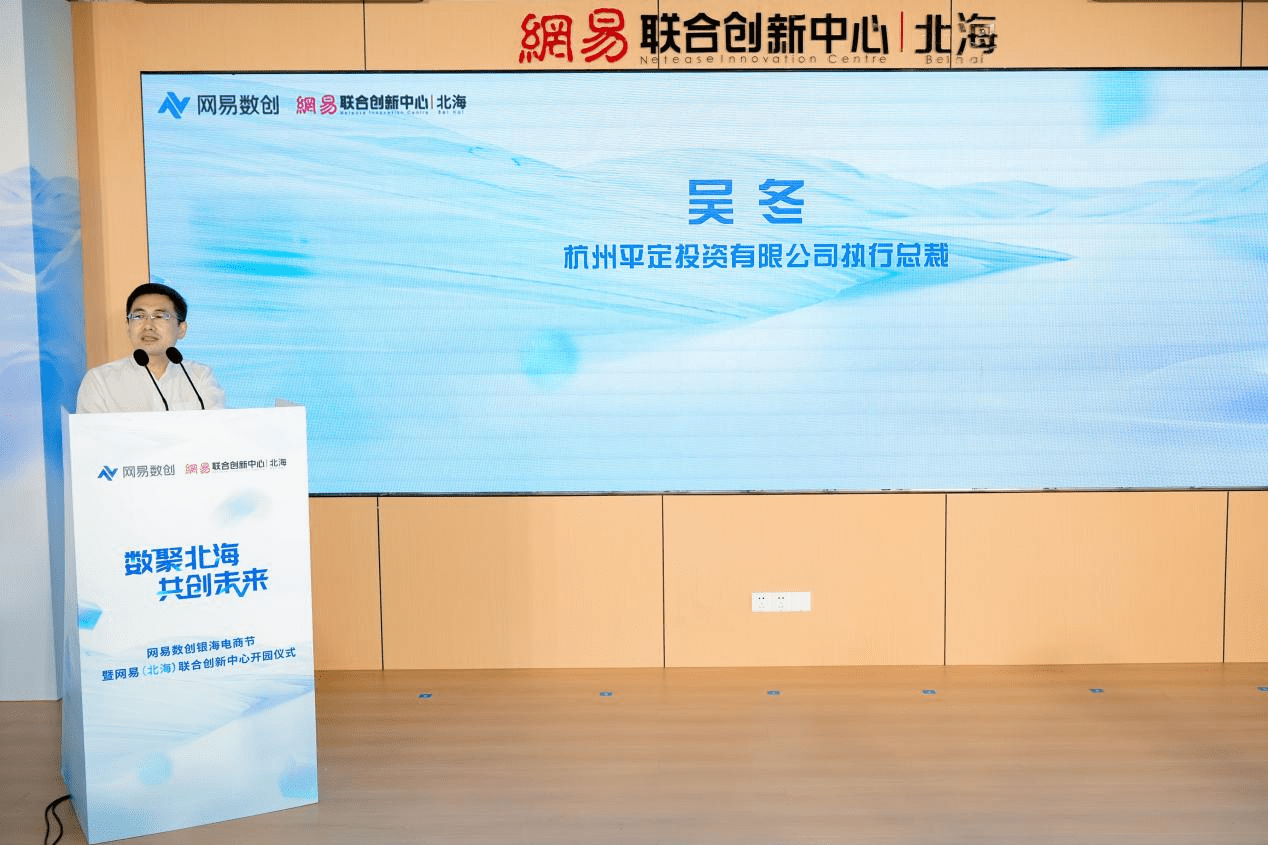 网易(北海)联合创新中心运营方代表、杭州平定投资有限公司执行总裁吴冬在活动中致辞,他表示,网易(北海)联合创新中心将持续发挥资源优势,培育数字化创新土壤,做好政府的助手、企业的帮手、产业的推手。