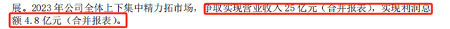伊力特2023年的业绩目标,是实现营业收入25亿元(合并报表),实现利润总额4.8亿元(合并报表)。