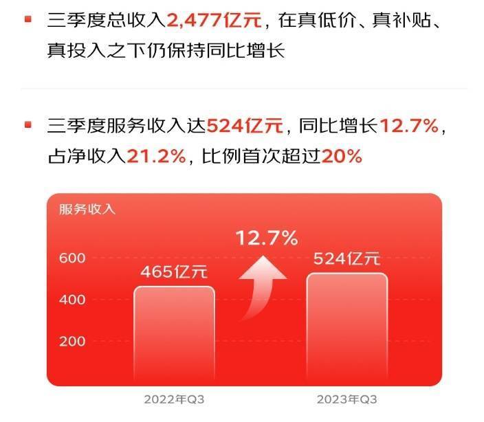 11月15日,京东集团发布了2023年三季度业绩。财报显示,三季度,京东集团收入达到2,477亿元人民币;作为核心品类的电子产品及家用电器继续保持收入同比增速高于行业平均水平;服务收入达到524亿元人民币,占整体收入的比例首次超过20%,达到21.2%,其中物流及其他服务收入的同比增长19.3%。