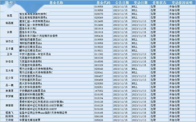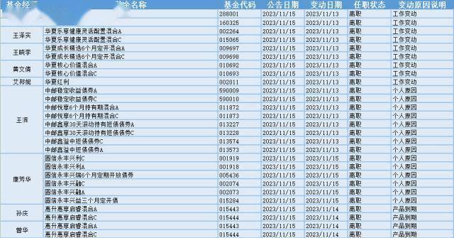 根据巨灵统计的数据显示,近30天(10.15-11.15)共有351只基金产品的基金经理发生离职变动。其中今天(11.15)有27只基金产品发布基金经理离职公告,从变动原因上来看,有6位基金经理是由于工作变动从管理的9只基金产品中离职的,有2位基金经理是由于个人原因从管理的14只基金产品中离职的,有2位基金经理是由于产品到期从管理的4只基金产品中离职的。