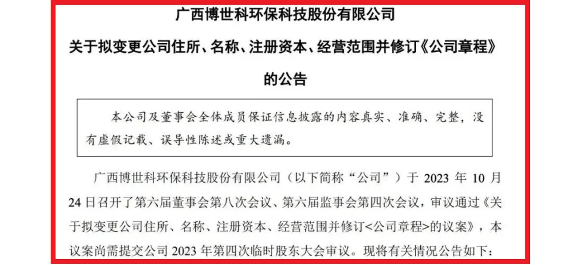 宣布将变更公司名称为安徽博世科环保科技股份有限公司(暂定),并将公司住所迁往安徽宁国。这一举动在广西引发了广泛的关注和讨论。