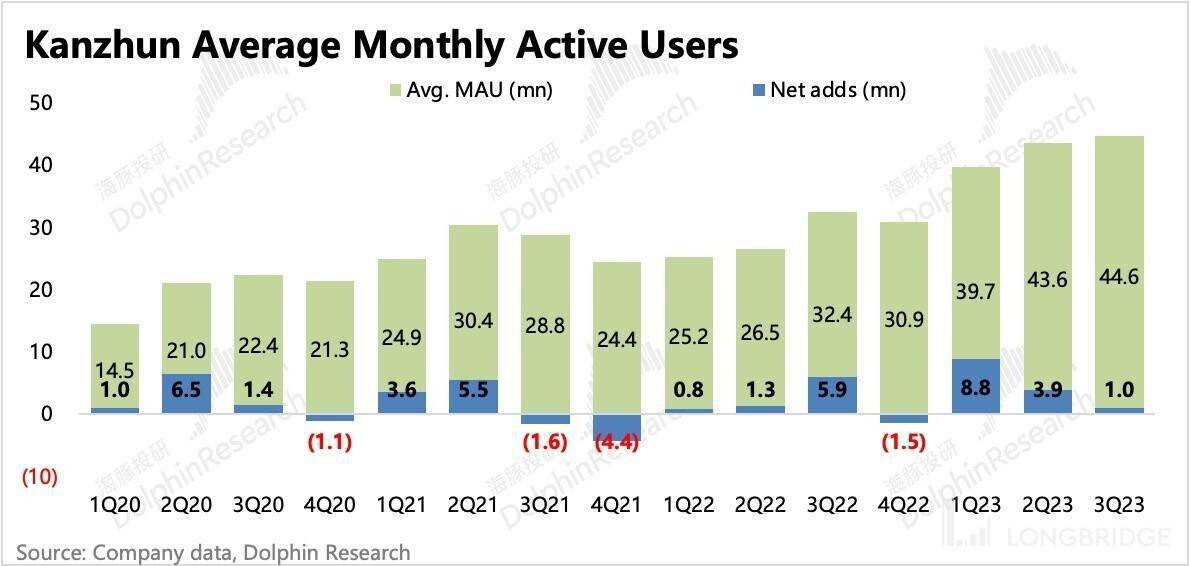 三季度 BOSS 直破月活环比净增 100 万用户,达到 4460 万人,继续突破新高。虽然是招聘旺季,但因为今年情况特殊,行业变化迅速,因此上半年求职者异常活跃,给平台带来的新增流量更多。